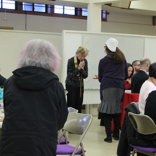 Warm bowls of buckwheat noodle were enjoyed by everyone who came downstairs after the service -- OBWA, January Toban and many other volunteers came early in the morning to prepare the delicious otoki! The basement hall was filled with the comforting scent of dashi (stock), and the happy faces of Sangha having good time!